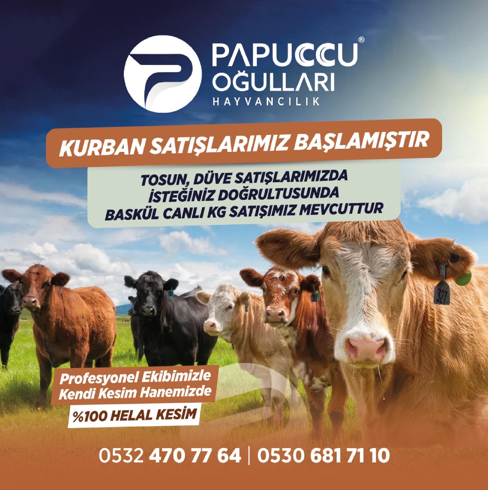 Papuccu Oğulları Hayvancılık, Kurban Bayramı öncesi hazırlıklarını tamamlayarak kurbanlık satışlarına başladı. Firma, geniş hayvan portföyüyle vatandaşlara güvenilir ve sağlıklı kurbanlık seçenekleri sunuyor.Tosun ve düve satışlarının yapıldığı işletmede, müşterilerin taleplerine göre…